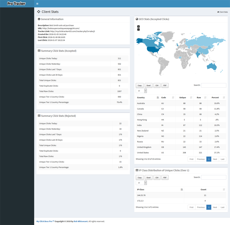 With every order, you also receive your very own tracker so you can track visitors, where they are coming from, and how many clicks you received from me so far.